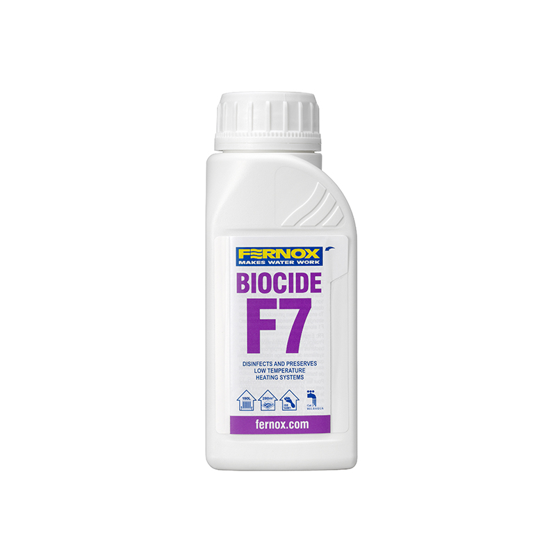 Le biocide F7 protège contre la prolifération bactérienne et fongique dans les systèmes de chauffage résidentiels et les systèmes d’eau glacée non évaporatifs. Fernox recommande