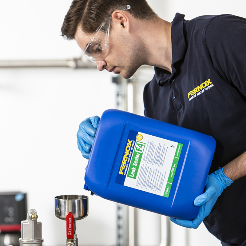 Fernox Leak Sealer F4 est classé comme non dangereux, mais comme avec tous les produits chimiques, il doit être tenu hors de la portée des enfants. En cas de contact avec les yeux ou la peau, rincer abondamment à l’eau immédiatement.
