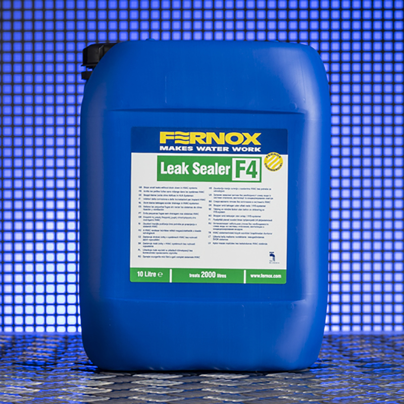Fernox Leak Sealer F4 10L est fourni en récipients de 10 litres.