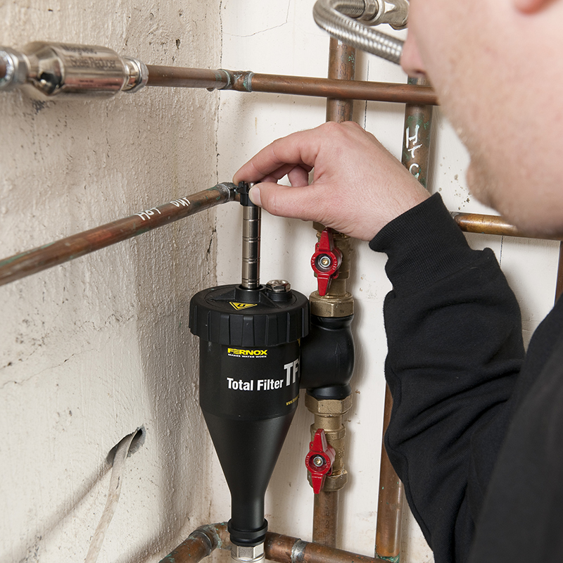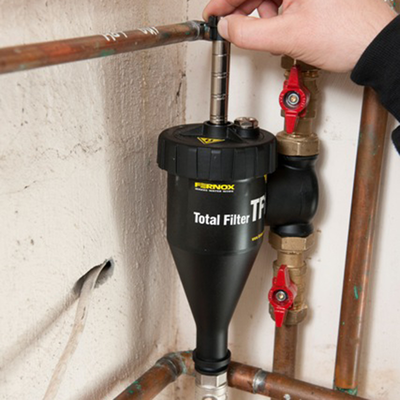 Le TF1 Total Filter primé combine l’action hydrocyclonique avec de puissants assemblages magnétiques au néodyme, pour éliminer les contaminants magnétiques et non magnétiques de l’eau du système et les contenir en toute sécurité dans le filtre. Fabriqué en plastique composite de précision, ce filtre s’adapte aux canalisations verticales et horizontales. Pour faciliter l’installation, il peut fonctionner jusqu’à un angle de 45°. Il peut être nettoyé en quelques minutes et ne limite pas le débit.
